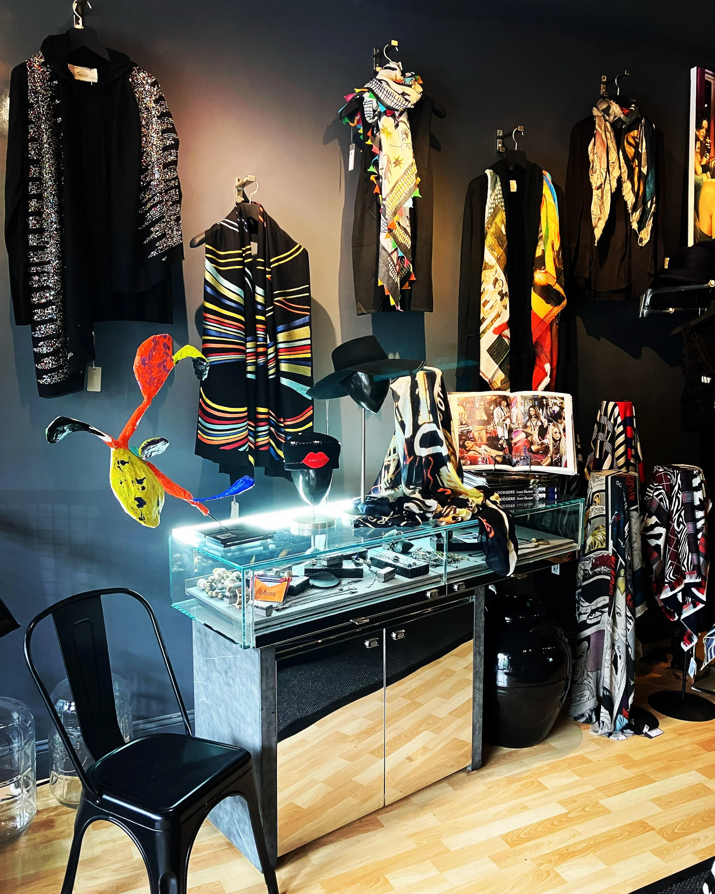 I pride myself with the many small batch collaborations with elevated designers creating one of a kind limited productions. I also carry several known exquisite lines of jewelry and fashion exclusive to my store. I specifically gravitate towards quality avant guard designs for men, women, and gender fluid individuals."