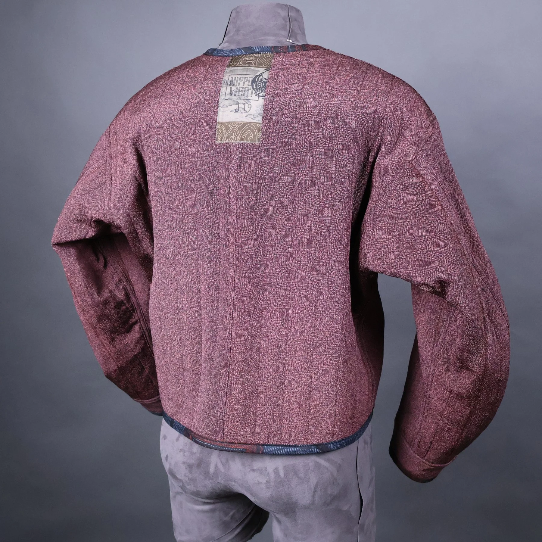 it wasn’t until 2016, when he wanted to make a kimono-style coat out of a US Army blanket from WW2, that he taught himself how to sew, later learning to make his own patterns. This began a journey of making garments and accessories using vintage Japanese fabrics, shapes, and ideas. Every piece is one of a kind, each produced from up-cycled or dead stock materials in his studio in upstate New York.